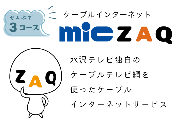 micZAQは水沢テレビ独自の映像伝送用ケーブルを使用したインターネットサービスです。